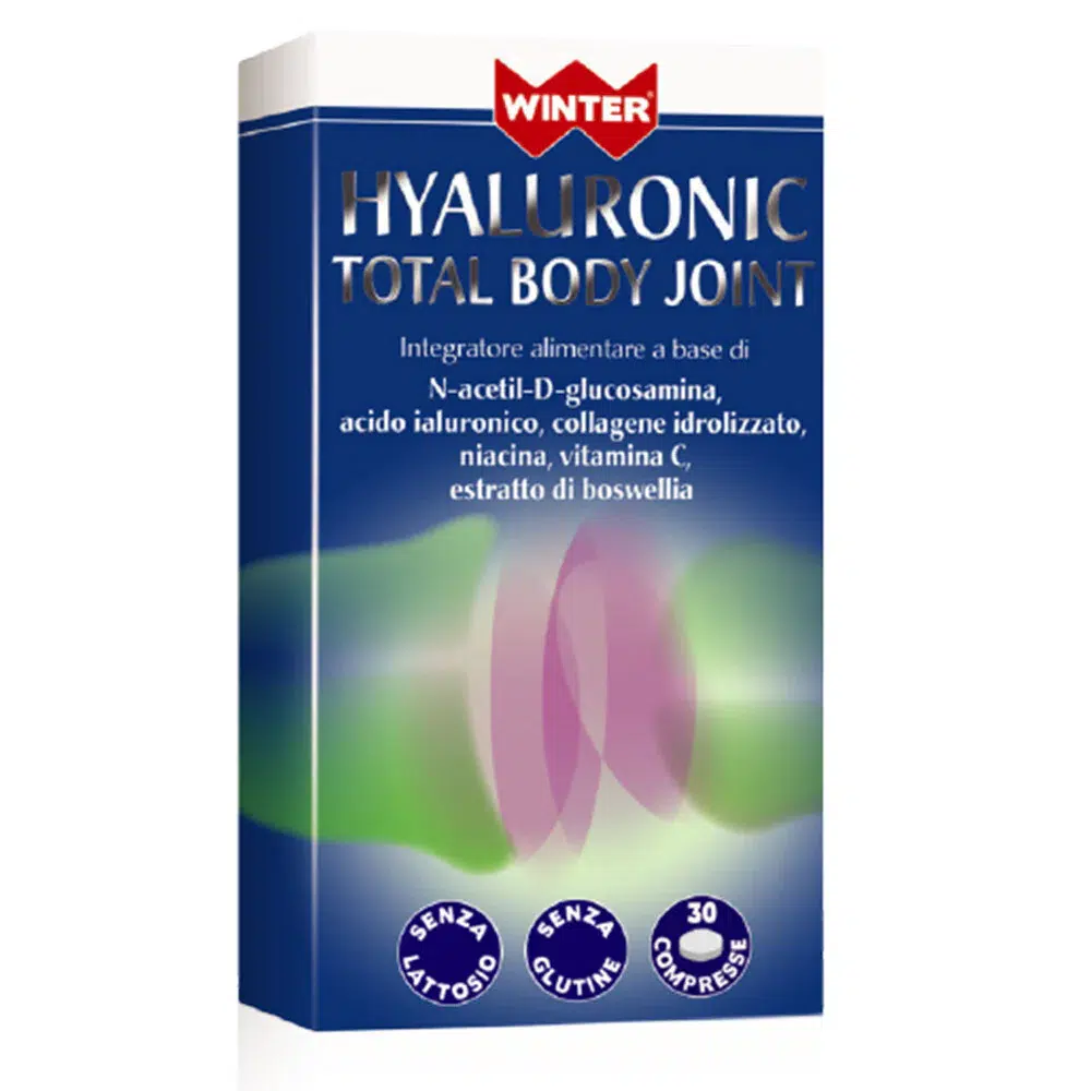 Ingredienti : Agente di carica: cellulosa microcristallina; N-acetil-D-glucosamina, sodio ialuronato ad alto peso molecolare (1800-2200 kDa), vitamina C (acido L-ascorbico), boswellia (Boswellia serrata Roxb. ex Colebr., gommo resina) e. s. tit. al 65% in acidi boswellici totali, collagene idrolizzato, stabilizzante: carbossimetilcellulosa sodica reticolata; agenti antiagglomeranti: biossido di silicio, sali di magnesio degli acidi grassi; niacina (nicotinamide).