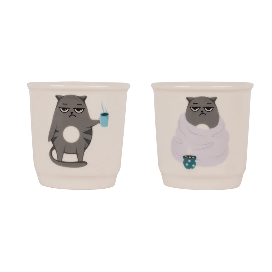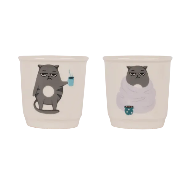 Condividi la pigrizia felina con questo divertente Set di Tazzine da caffè decorato con una coppia di gatti senza troppa voglia di fare. Due tazzine che rappresentano perfettamente l’atteggiamento di chi, come i gatti, ha fatto della pigrizia un’arte!