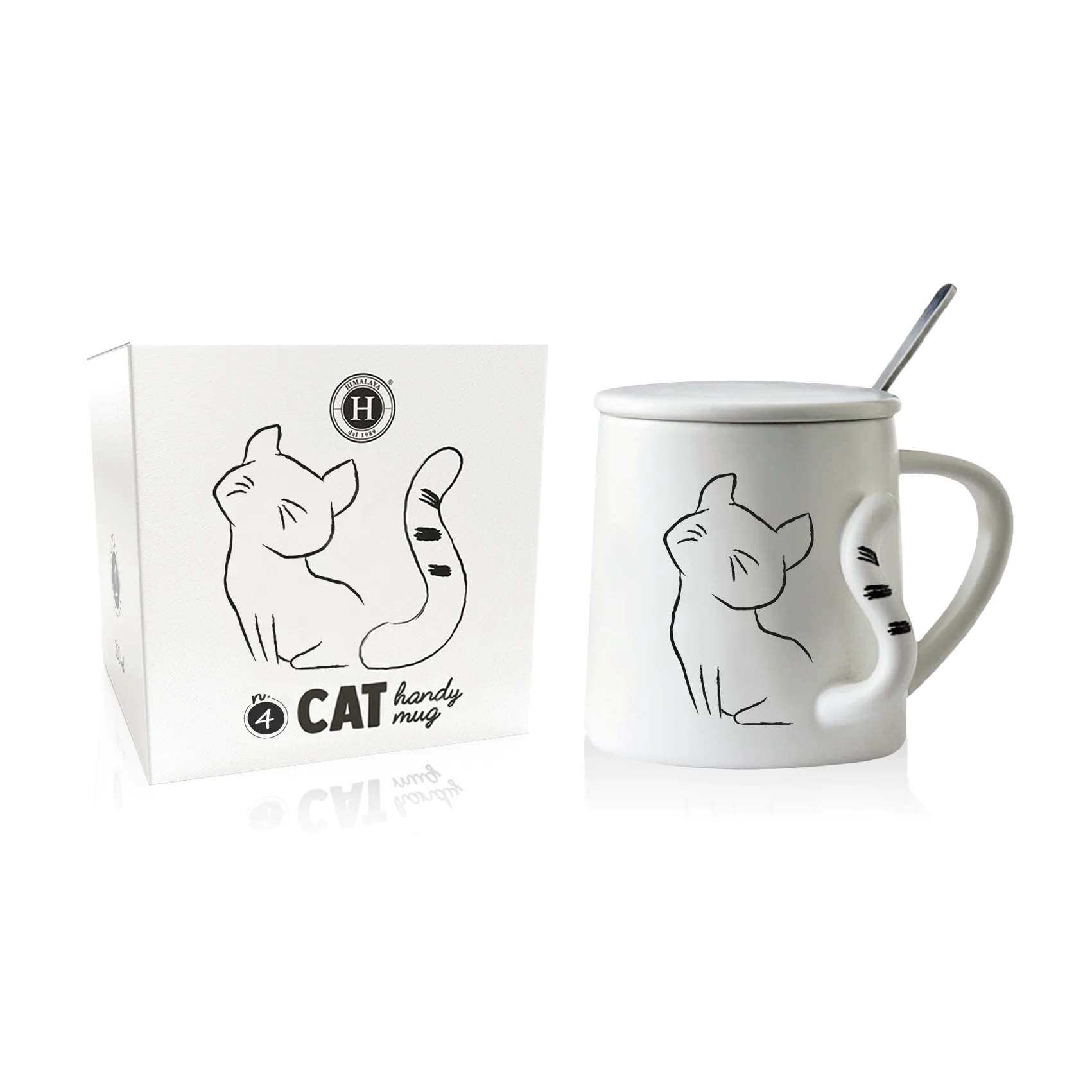 Cat è una tazza con coperchio in ceramica e cucchiaino in acciaio. Viene proposta in diversi modelli, tutti da collezionare.