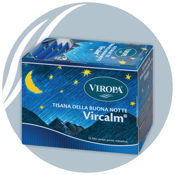 mettere la bustina filtro di VIRCALM Tisana della buona notte Viropa in una tazza, versare 200ml di acqua calda e lasciare in infusione per 6- 8 minuti.